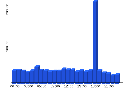 | Stunden | Zugriffe | % | Bytes | % | Bits/Sek | Bytes/Sek |