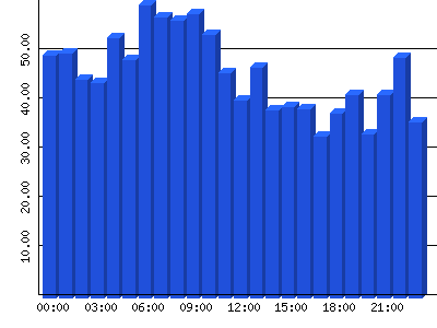 | Stunden | Zugriffe | % | Bytes | % | Bits/Sek | Bytes/Sek |