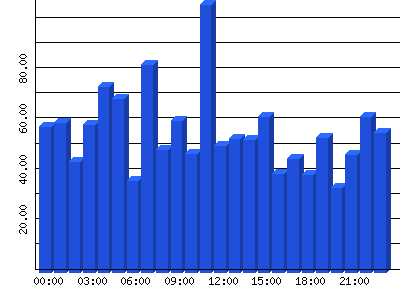 | Stunden | Zugriffe | % | Bytes | % | Bits/Sek | Bytes/Sek |