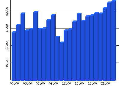 | Stunden | Zugriffe | % | Bytes | % | Bits/Sek | Bytes/Sek |